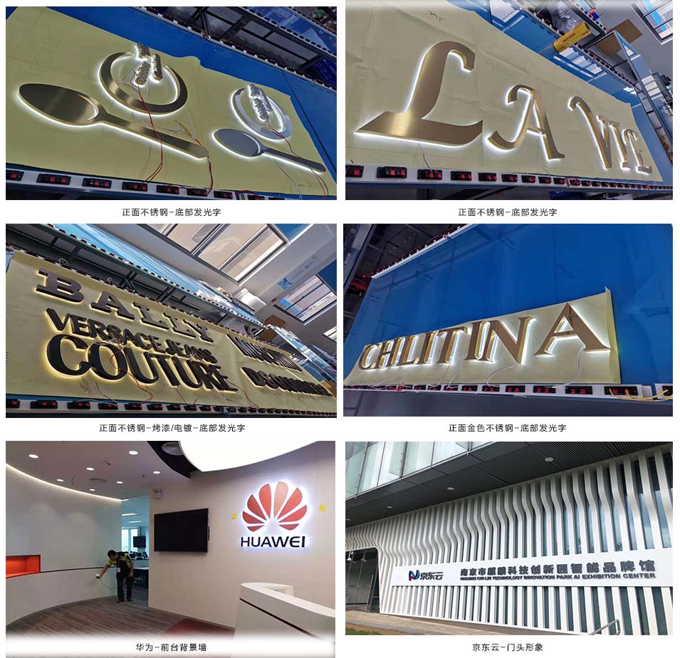不銹鋼字殼可做拉絲的、鏡面的(亮面) 。激光切割成字型,再圍邊、打磨、拋光。不銹鋼材質美觀大方、壽命長、耐風化;面板進口亞克力激光雕刻、玻璃膠粘合密封;光源采用節(jié)能LED適用制作各種廣告招牌。